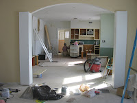 Standing by the front door looking into the kitchen. Nana, my mother is in there painting the cabinets, by the back door. She drove many miles to come and help!!! Thanks!